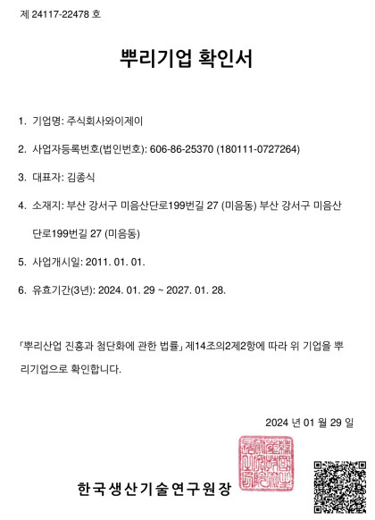 인증받은 기술력으로 더욱 앞서겠습니다