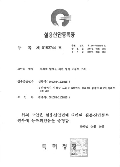 KS인증서_KSB1016-기초볼트